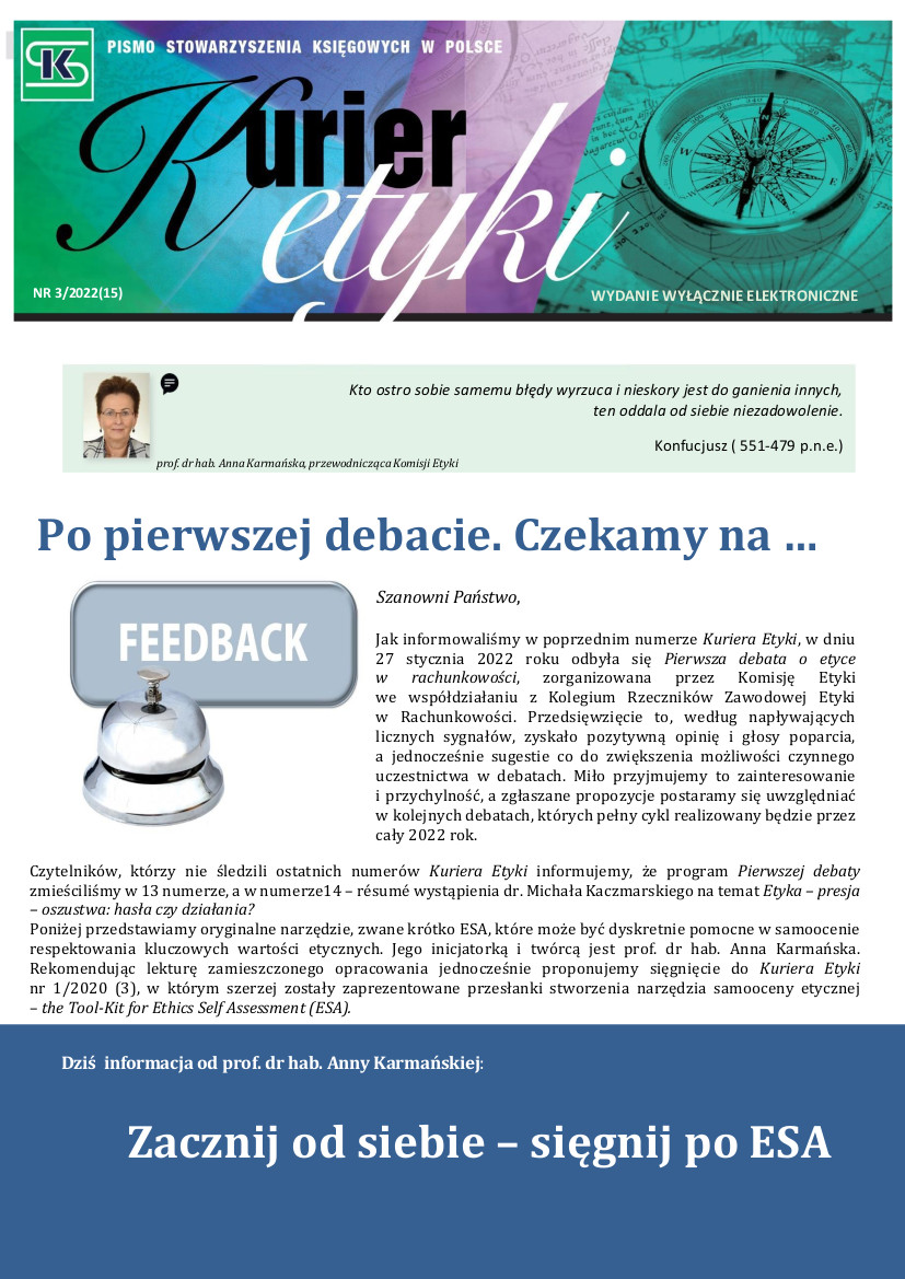 Kolejny numer Kuriera Etyki z serii… podsumowanie Debaty o etyce w rachunkowości Zapraszamy do lektury! Pliki do pobrania chevron_right wersja PDF udostępnij