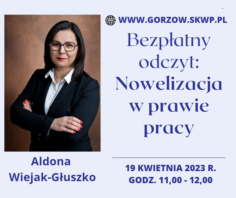 ALDONA WIEJAK-GŁUSZKO - prawnik, specjalista ds. prawa pracy z kilkunastoletnim doświadczeniem. Ukończyła aplikację sądową. Doświadczenie zawodowe nabyła pracując jako specjalista w Państwowej Inspekcji Pracy – Okręgowym Inspektoracie Pracy w Szczecinie w latach 2008-2019, gdzie udzielała porad prawnych, przygotowywała analizę i opinie prawne z zakresu prawa pracy, zajmowała się współpracą z jednostkami administracji państwowej i partnerami społecznymi (związki zawodowe). Współpracowała z lokalnymi mediami oraz brała czynny udział akcjach promocyjno-prewencyjnych organizowanych przez PIP. Obecnie prowadzi szkolenia z zakresu prawa pracy dla pracodawców, pracowników oraz związków zawodowych.