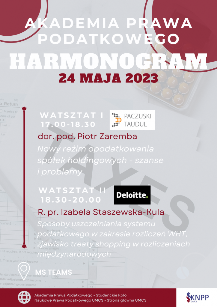 Rejestracja potrwa do 21 maja br. Udział w Akademii Prawa Podatkowego jest bezpłatny.