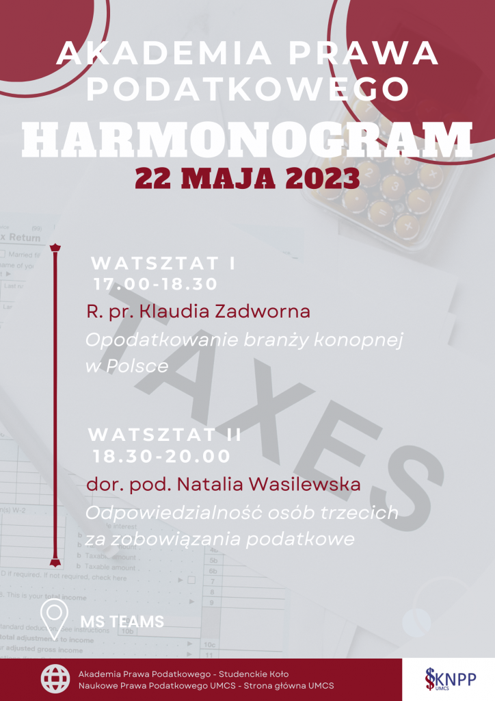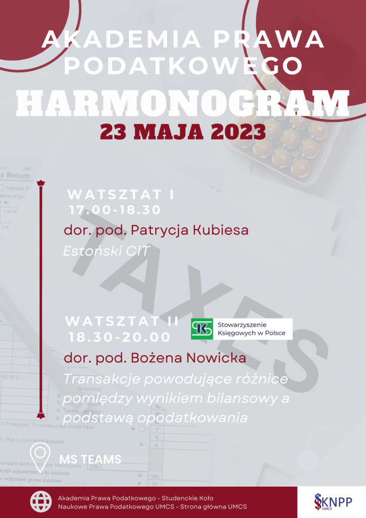 Rejestracja potrwa do 21 maja br. Udział w Akademii Prawa Podatkowego jest bezpłatny.