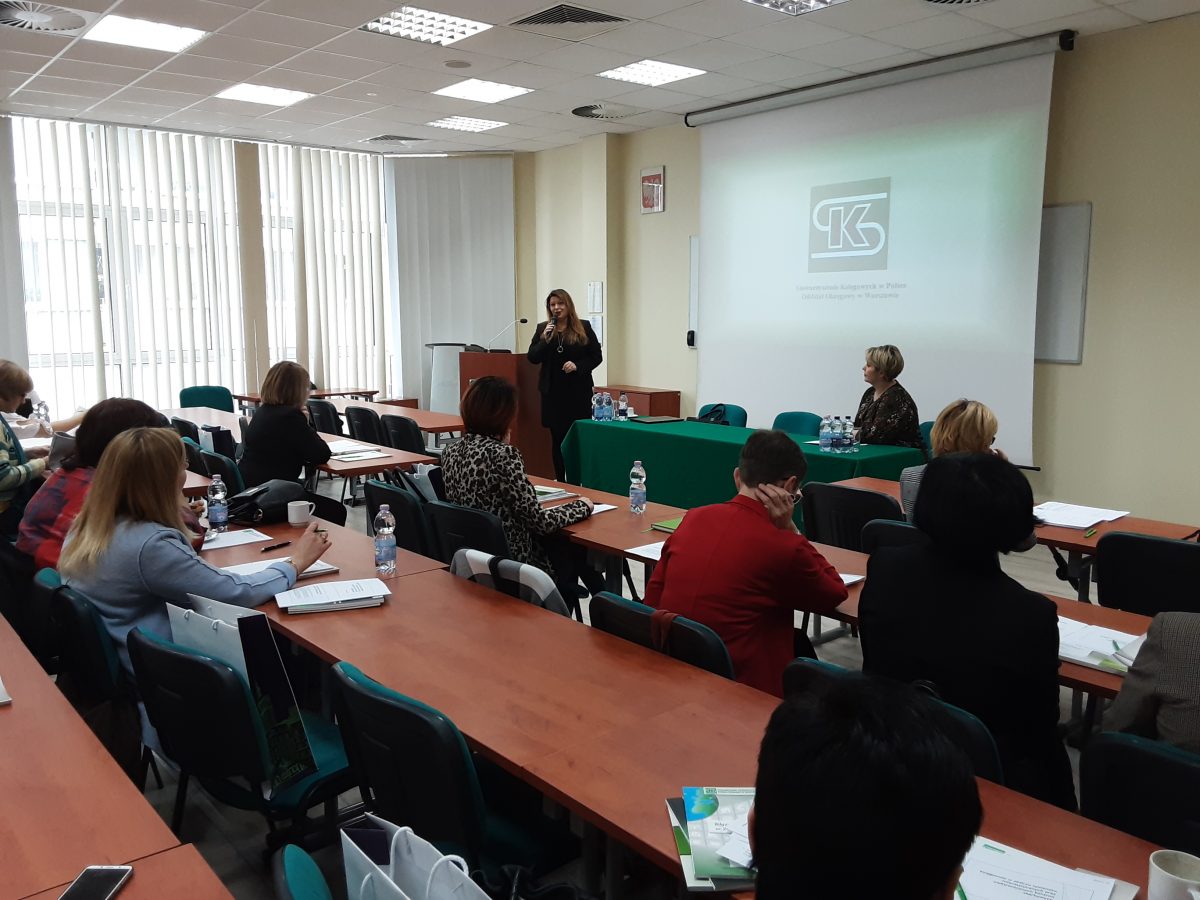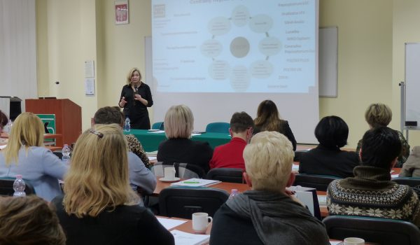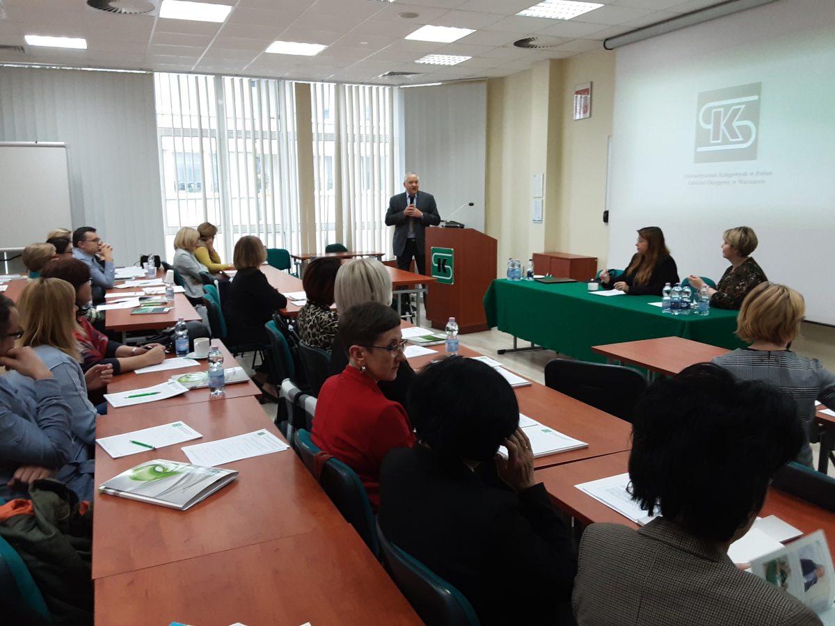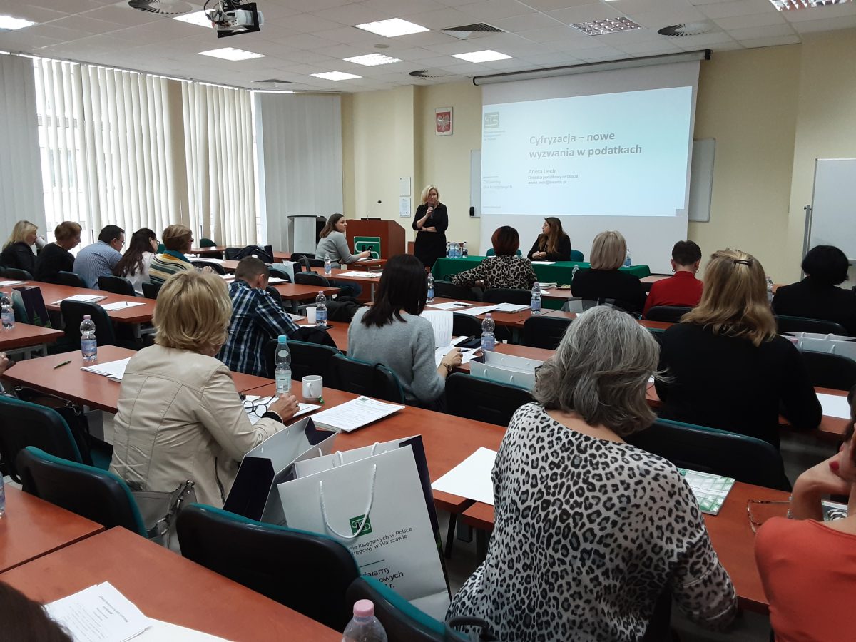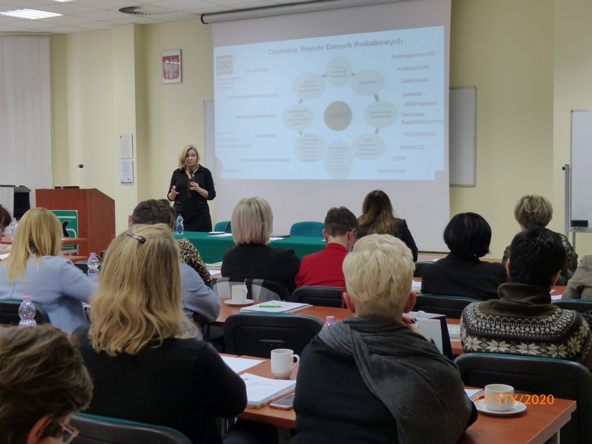 Stowarzyszenie w swojej działalności największy nacisk kładzie na kształcenie zawodowe, zarówno swoich członków jak i uczestników szkoleń oraz kursów, przekazując im zawsze bieżące informacje o zmianach w przepisach czy zmianach w podatkach. Nauczyciele, którzy przybyli na spotkanie także dostali garść takich informacji. Wykład „Księgowy w obliczu systemów informatycznych oraz kontroli skarbowych” poprowadziła Agnieszka Gajewska – biegły rewident, wiceprezes Zarządu O/O w Warszawie SKwP. W swojej prezentacji skupiła się na systemach IT do prowadzenia ksiąg rachunkowych – jakie były kiedyś, jakie są dziś i jakie będą w przyszłości, robotach coraz częściej wykorzystywanych w księgowości i wpływie jaki wywierają na pracę księgowego oraz sprawozdaniach finansowych sporządzanych w formacie XML. Poruszyła także zagadnienia związane z procesami biznesowymi zachodzącymi w jednostkach gospodarczych i ich związku z systemami informatycznymi.