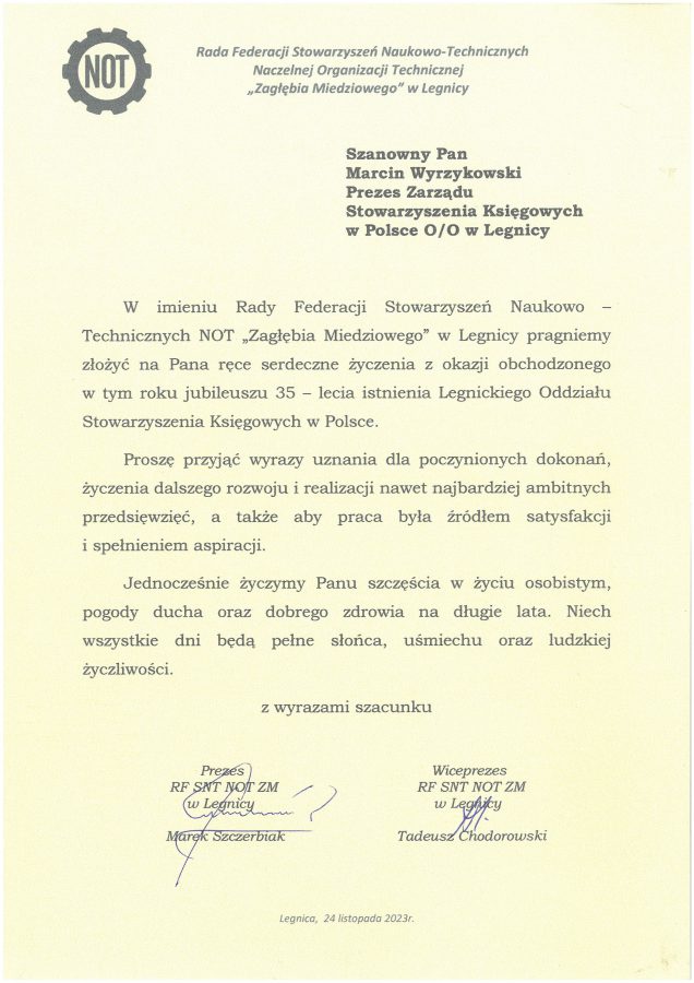 - Prezes Zarządu Oddziału Dolnośląskiego SKwP we Wrocławiu prof. zw. dr hab. Inż. Zbigniew Luty,