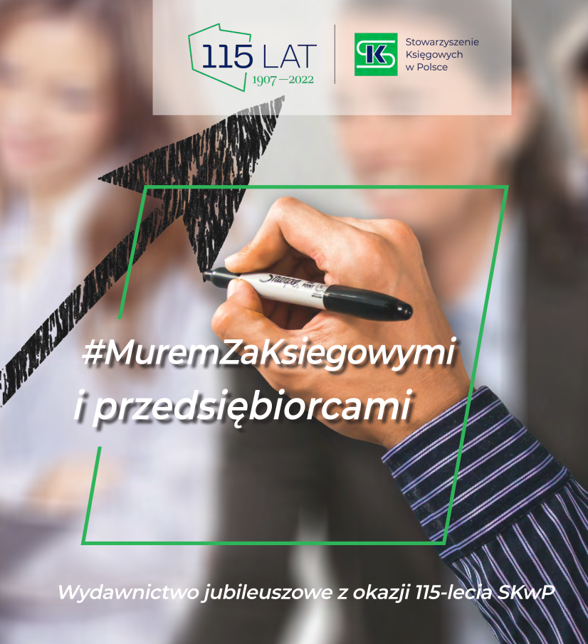 Zapraszamy do lektury jubileuszowej publikacji "#MuremZaKsiegowymi i przedsiębiorcami", wydanej przez Stowarzyszenie Księgowych w Polsce z okazji obchodzonej w 2022 roku 115. rocznicy istnienia społeczno-zawodowej organizacji księgowych. Zawiera ona krótki rys historyczny, informacje o działalności Stowarzyszenia, a także prognozy na przyszłość.