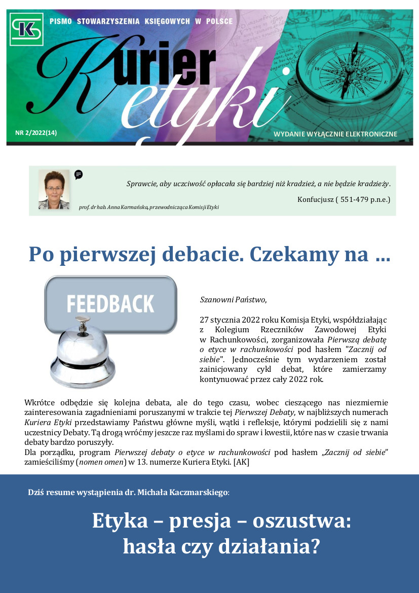 Zapraszamy do lektury kolejnego w tym roku Kuriera etyki, który traktuje O pierwszej debacie o etyce…