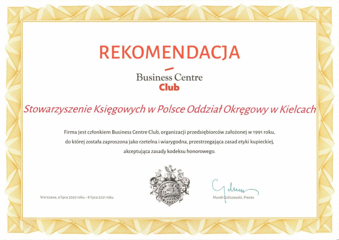 Stowarzyszenie Księgowych w Polsce Oddział Okręgowy w Kielcach zawarł w dniu 9 lipca 2020 r. umowę o współpracy z Business Centre Club i został jego członkiem.