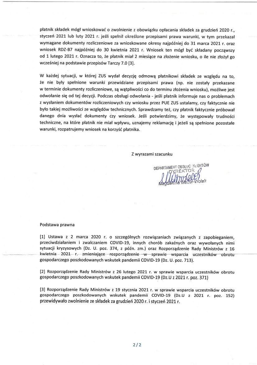 Odpowiedź z ZUS