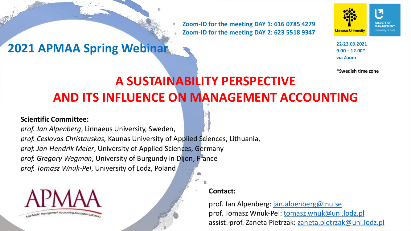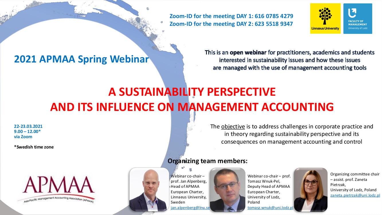 Wydział Zarządzania Uniwersytetu Łódzkiego, we współpracy z Linnaeus University (Szwecja), zaprasza wszystkich zainteresowanych do udziału w otwartym seminarium internetowym pt.: Perspektywa zrównoważonego rozwoju i jej wpływ na rachunkowość zarządczą - nacisk na praktykę.