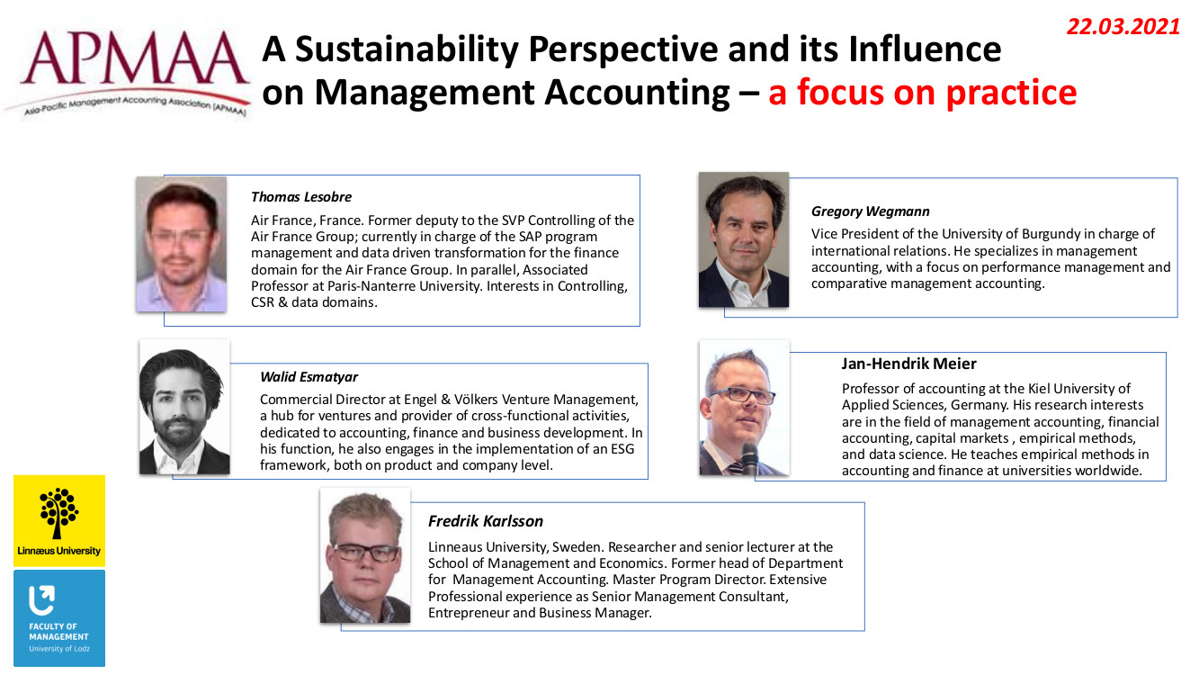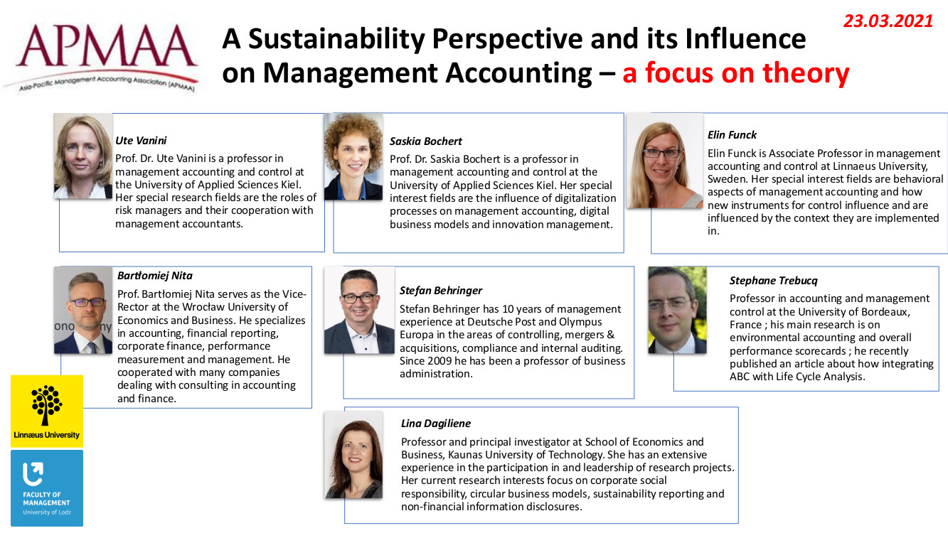 Wydział Zarządzania Uniwersytetu Łódzkiego, we współpracy z Linnaeus University (Szwecja), zaprasza wszystkich zainteresowanych do udziału w otwartym seminarium internetowym pt.: Perspektywa zrównoważonego rozwoju i jej wpływ na rachunkowość zarządczą - nacisk na praktykę.