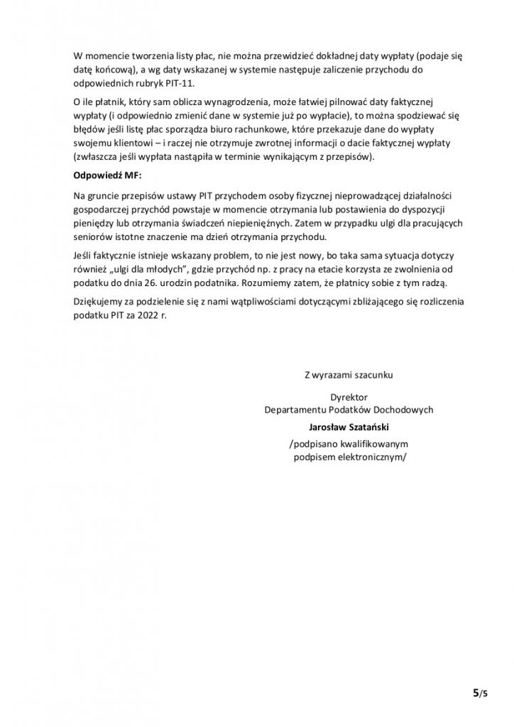 MF potwierdziło istnienie w tym zakresie problemu podnoszonego przez SKwP.