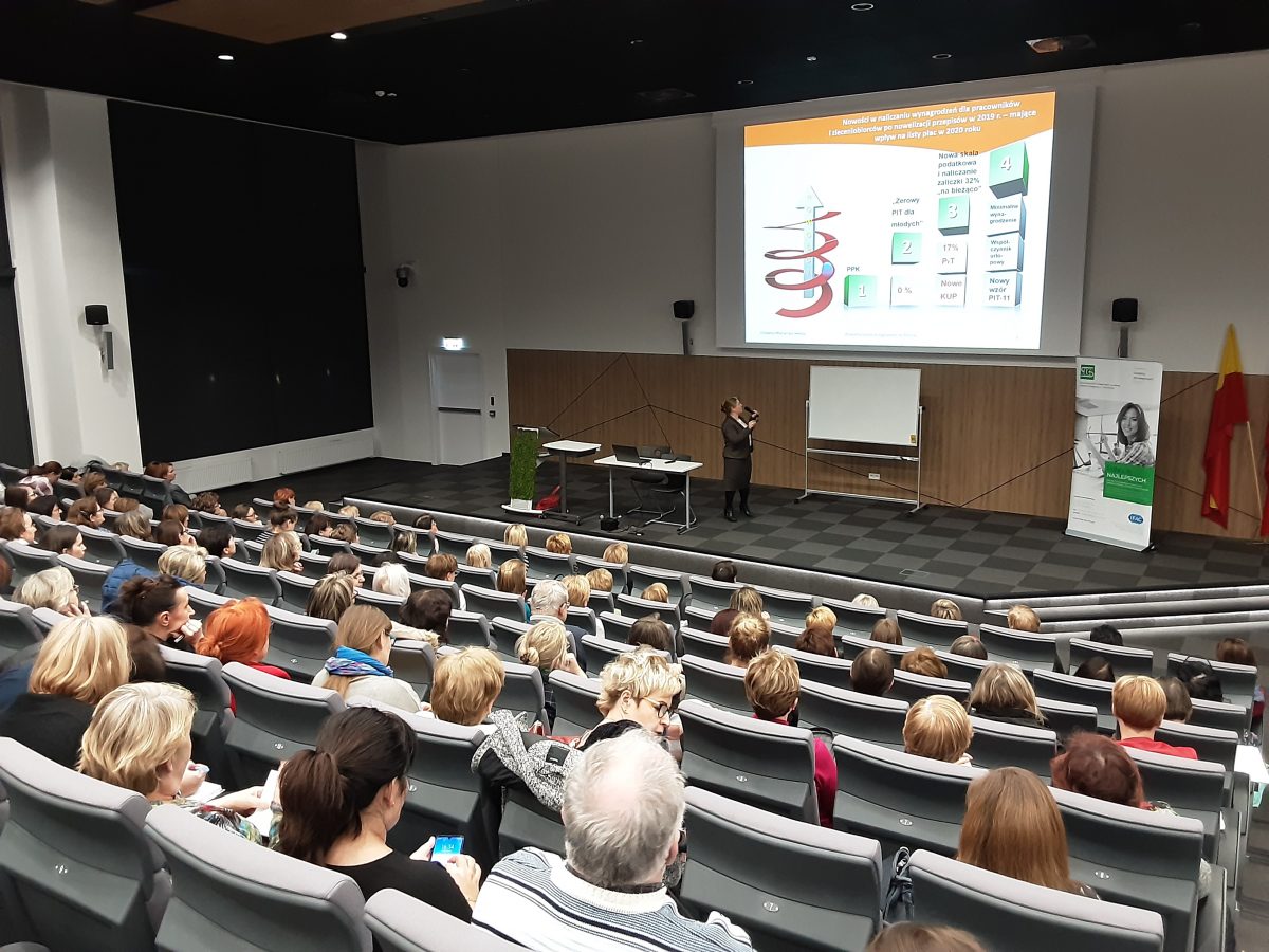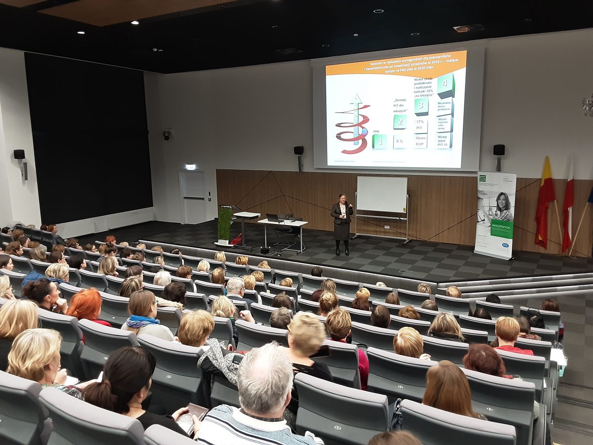 Temat bardzo ciekawy, a wykładowca ceniony, zarówno przez członków Stowarzyszenia, jak i uczestników szkoleń i kursów prowadzonych przez Panią Elżbietę, nie dziwi więc fakt, iż odczyt przyciągnął blisko 300 osób. A to zaledwie początek. Na najbliższe miesiące zaplanowano dla członków kilka innych ciekawych tematów m.in. z zakresu podatku CIT czy wpływu form płatności na zobowiązania podatkowe.