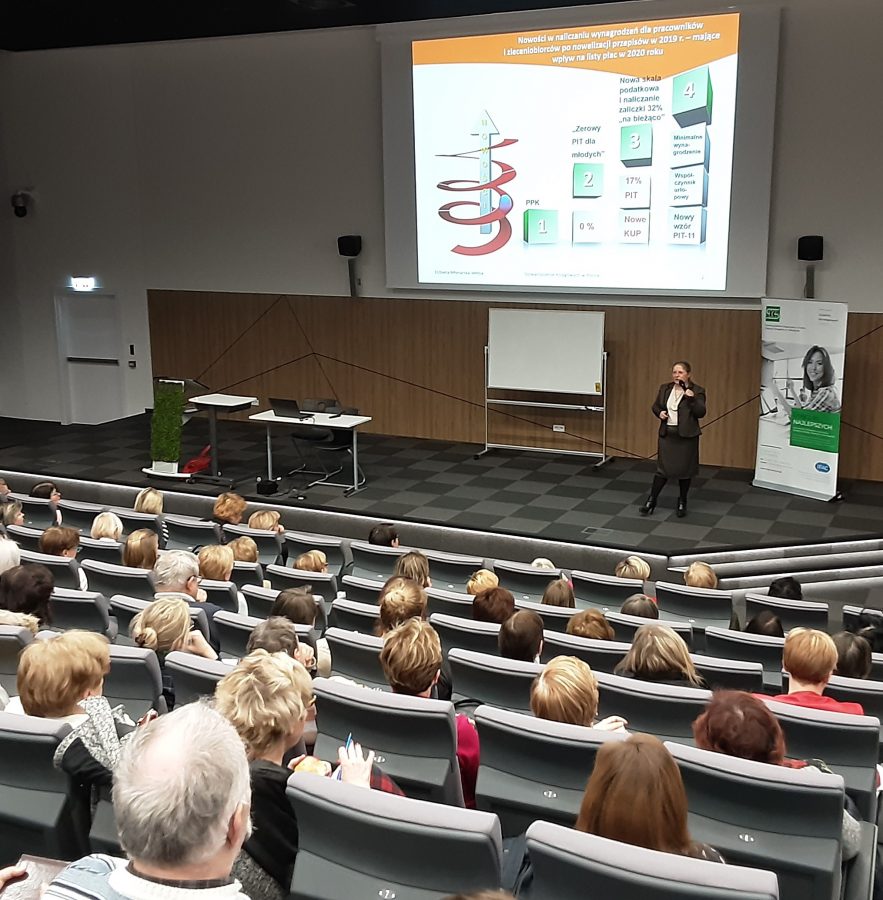 Na dobry początek na tapetę poszedł temat „Podatek dochodowy od osób fizycznych na liście płac po nowelizacji przepisów”, z którym zmierzyła się i przybliżyła słuchaczom Elżbieta Młynarska-Wełpa, specjalista w zakresie kadr i płac, członek Zarządu Oddziału Okręgowego w Warszawie SKwP.