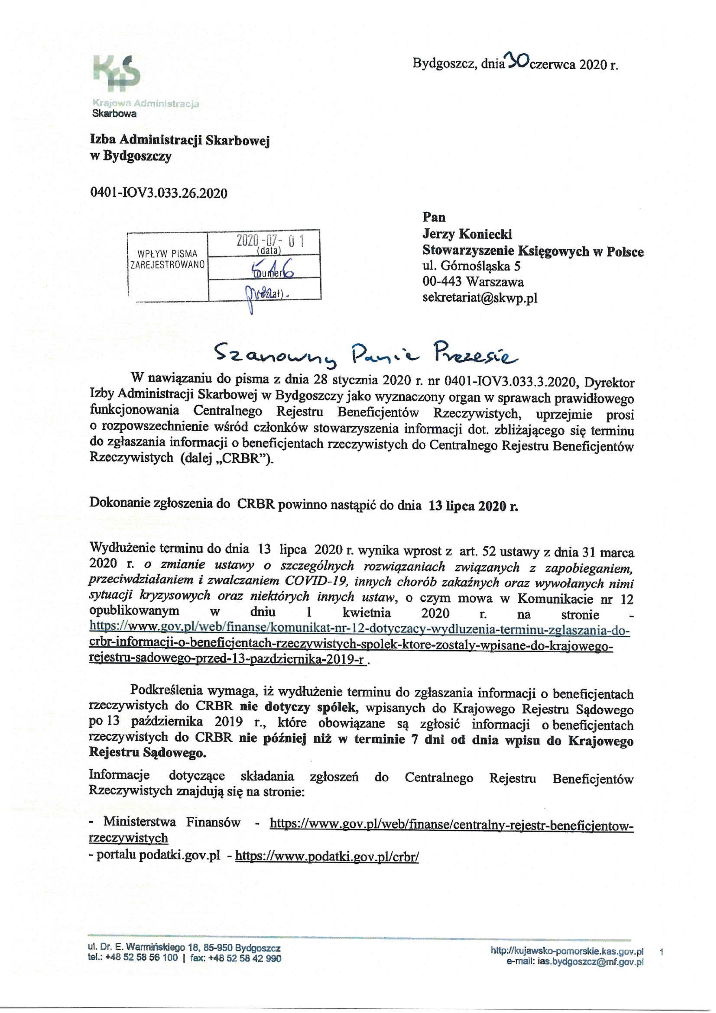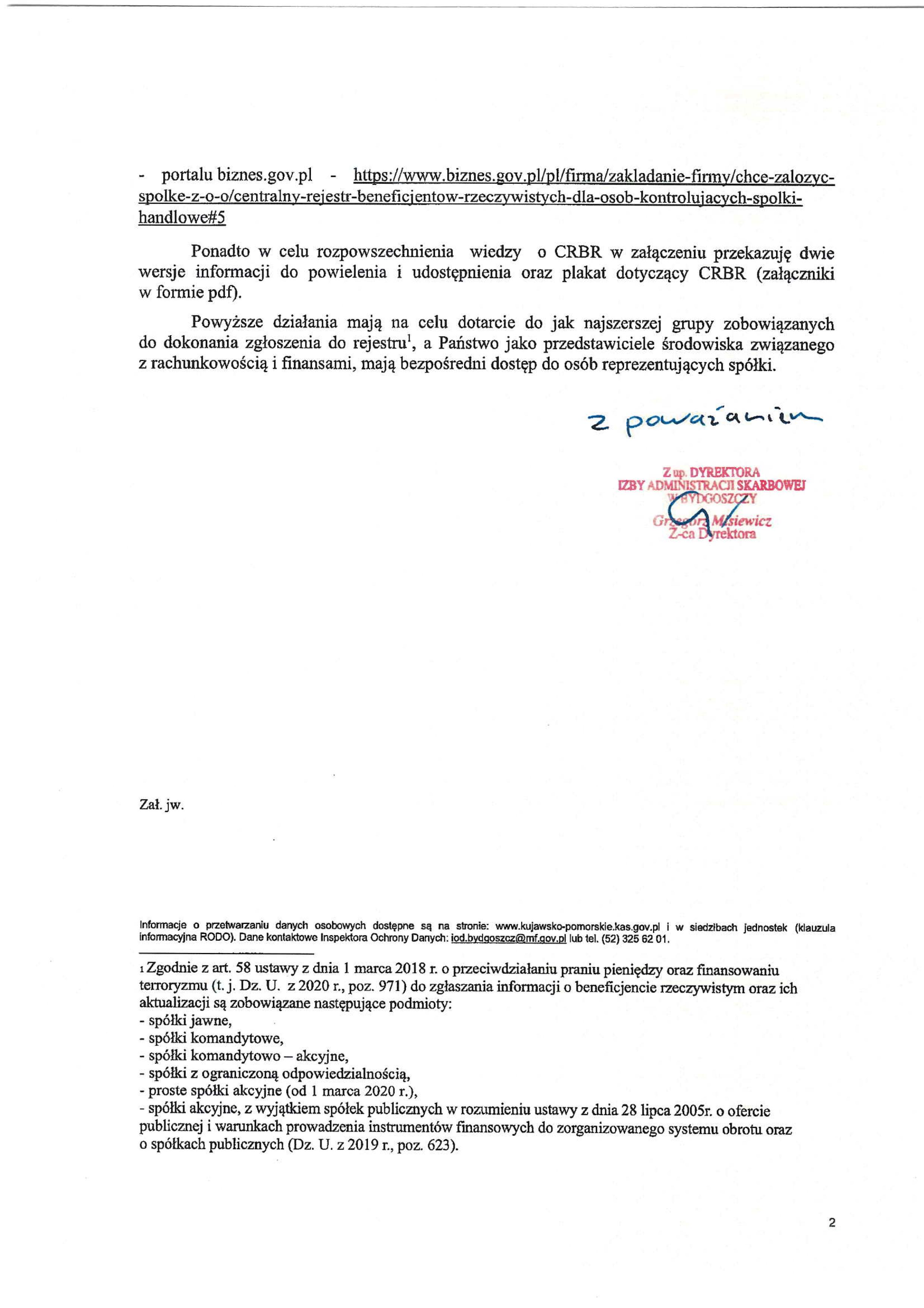 Izba Administracji Skarbowej w Bydgoszczy przypomina o zbliżającym się terminie do zgłaszania informacji o beneficjentach rzeczywistych do Centralnego Rejestru Beneficjentów Rzeczywistych (CRBR).