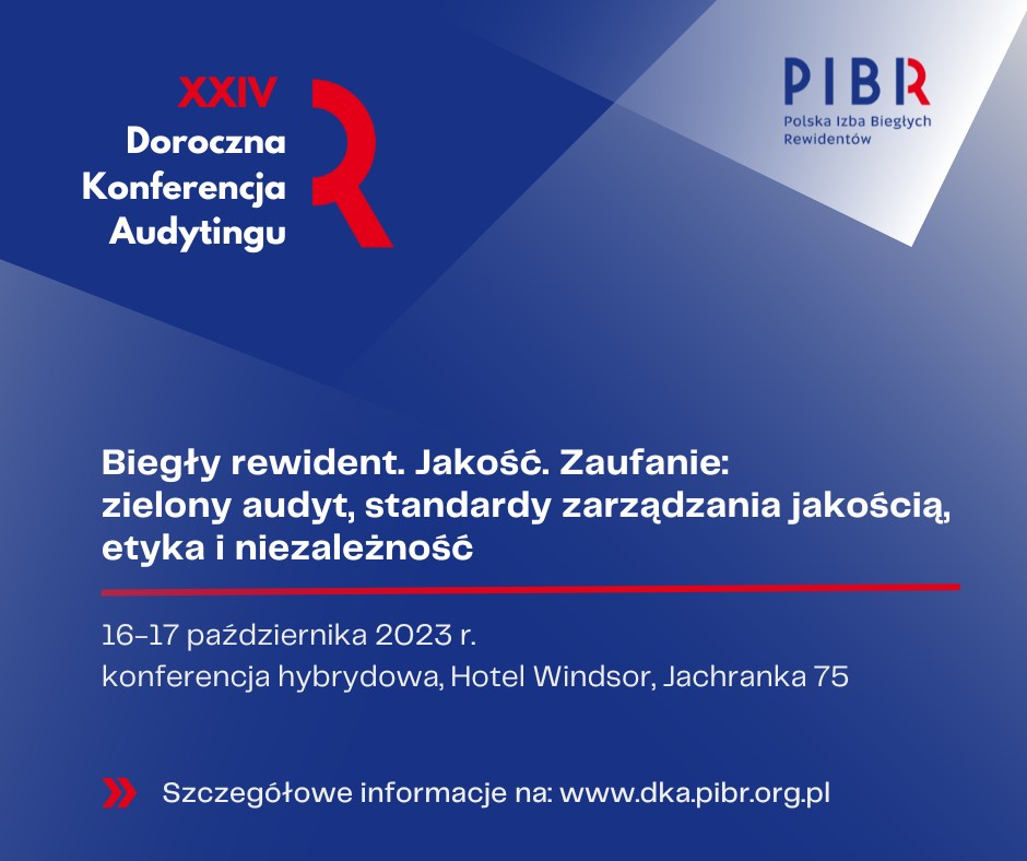 Doroczna Konferencja Audytingu odbędzie się w dniach 16-17 października 2023 r. Po trzyletniej przerwie spowodowanej pandemią, Polska Izba Biegłych Rewidentów ponownie zaprasza do bezpośredniego udziału w konferencji w Hotelu WINDSOR, Jachranka; konferencja będzie również dostępna online dla zarejestrowanych uczestników.
