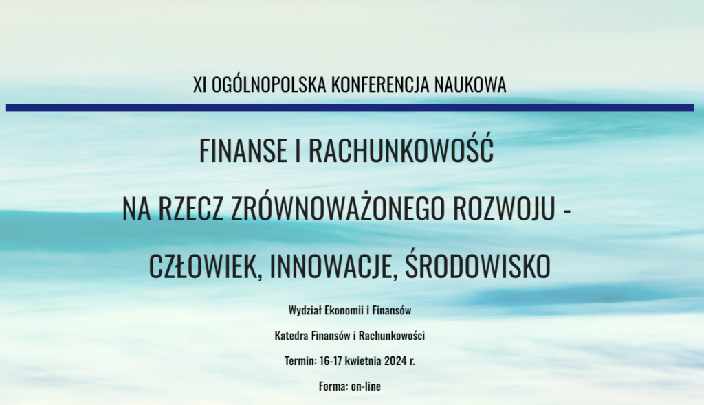 XI Ogólnopolskiej Konferencji Naukowej „Finanse i rachunkowość na rzecz zrównoważonego rozwoju – człowiek, innowacje, środowisko”,