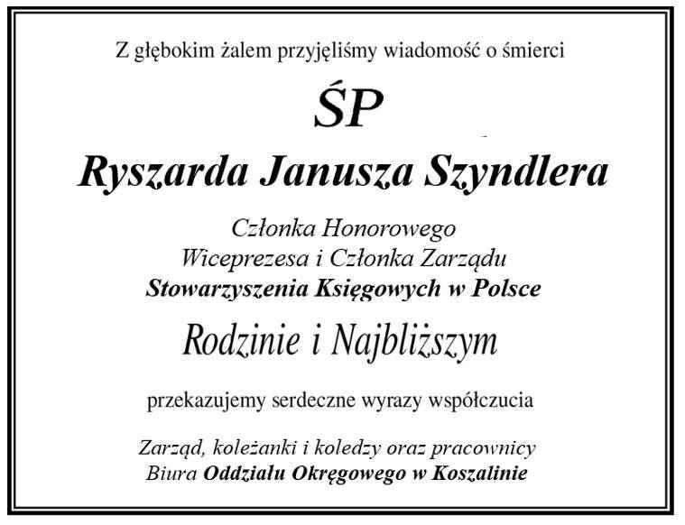 Rodzinie i Najbliższym wyrazy serdecznego współczucia w imieniu władz naczelnych Stowarzyszenia Księgowych w Polsce składa Zarząd Główny
