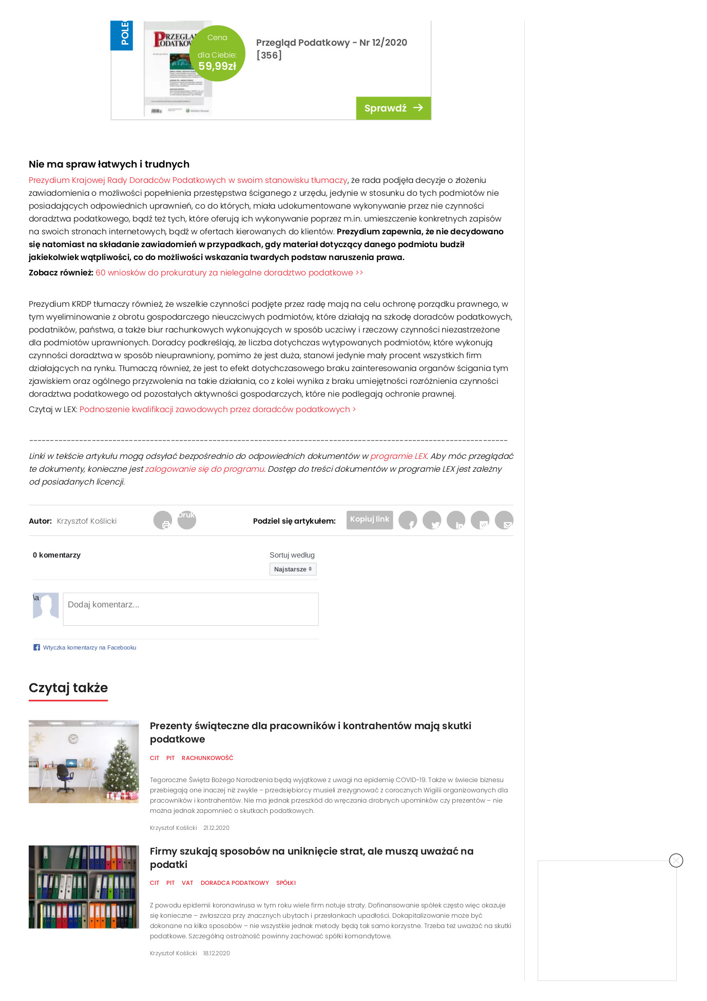 Krzysztof Koślicki: Czy księgowi wchodzą w kompetencje doradców podatkowych? Pojawił się zarzut, że księgowi świadczą usługi doradcze bez stosownych uprawnień.