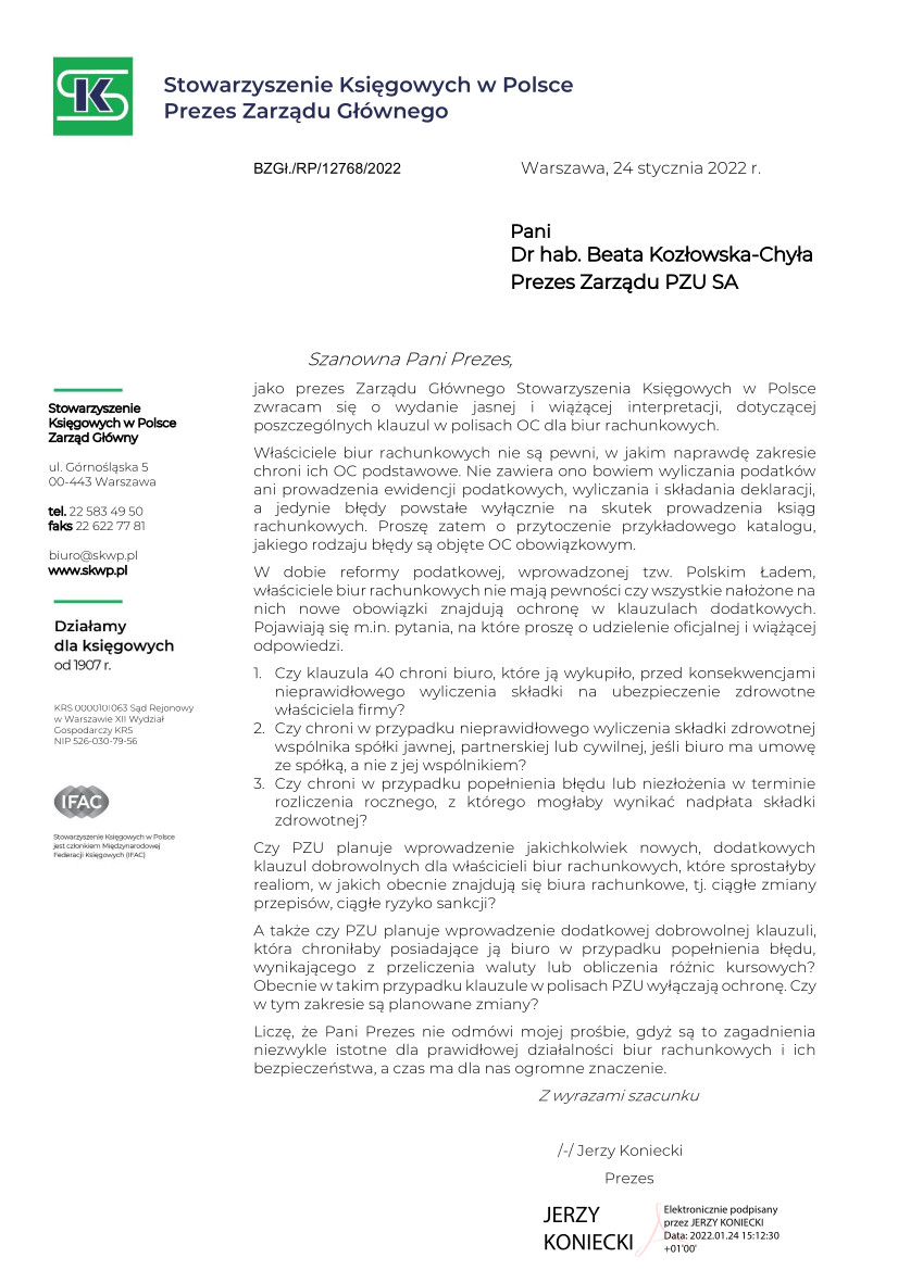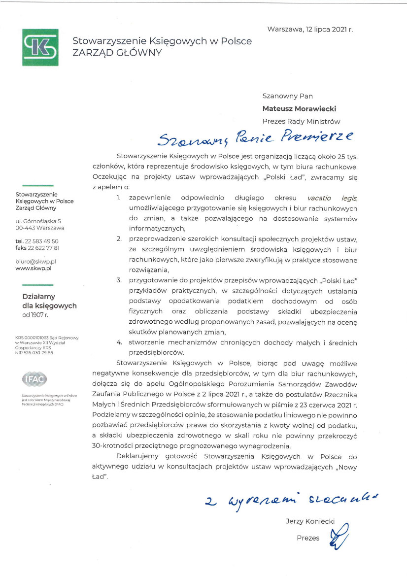 Oddział Wielkopolski w Poznaniu SKwP przekazał do Izby Administracji Skarbowej w Poznaniu opinie zebrane wśród księgowych i przedsiębiorców na temat pilotażu infolinii dla wszystkich urzędów skarbowych w Wielkopolsce.
