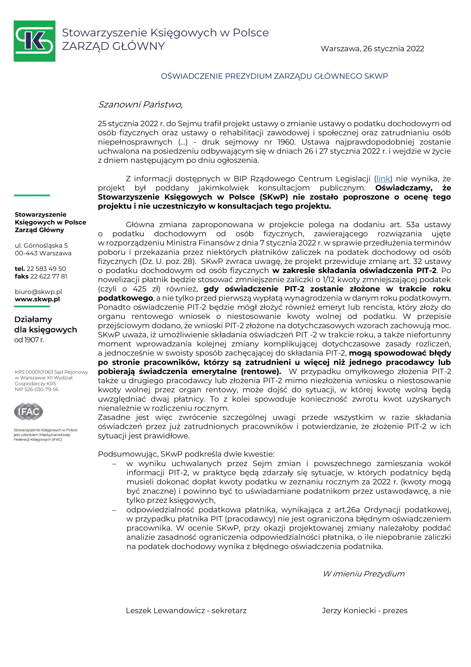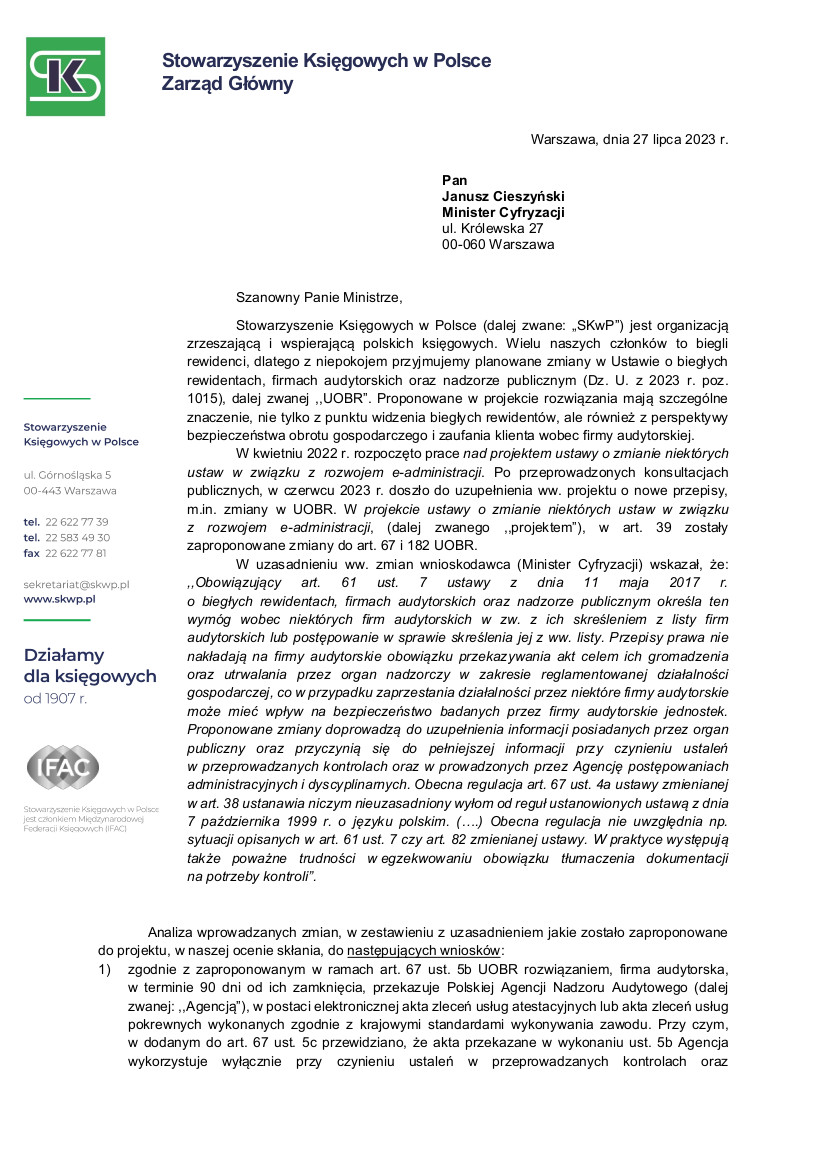 Stowarzyszenie Księgowych w Polsce zamierza nadal z pełnym zaangażowaniem reprezentować i wspierać wszystkich polskich księgowych. Wraz z Radą Naukową SKwP będziemy starali się przygotowywać księgowych do wyzwań, w tym wynikających ze stale rosnących oczekiwań otoczenia