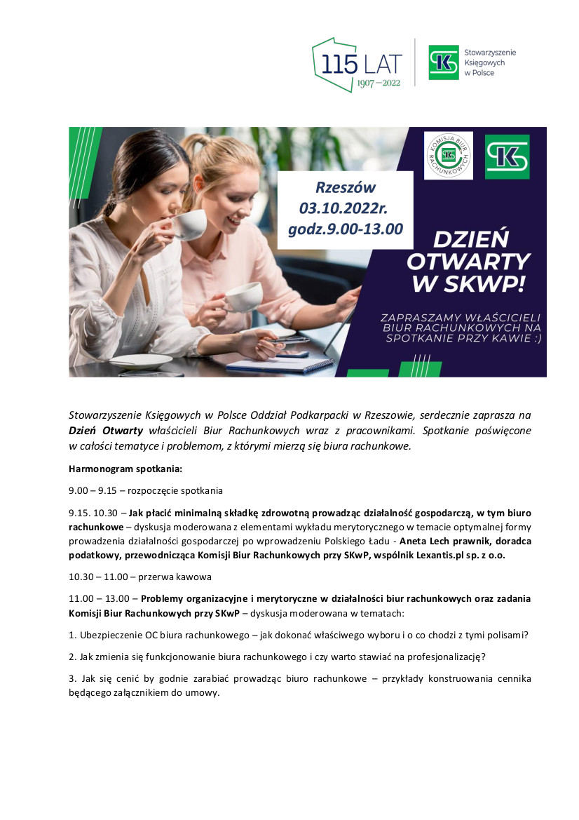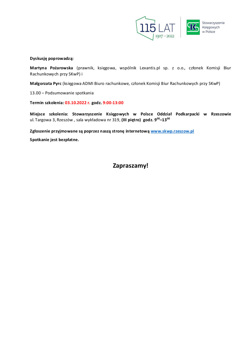 14 listopada Stowarzyszenie Księgowych w Polsce Oddział Okręgowy w Warszawie wraz z Komisją Biur Rachunkowych SKwP serdecznie zaprasza.