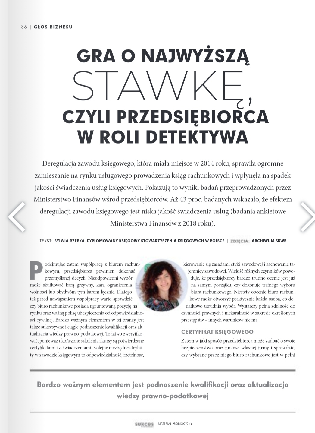 Argument, że droga do kariery doradcy podatkowego jest otwarta dla wszystkich księgowych mnie nie przekonuje. To korzystanie z uprzywilejowanej pozycji, wynikającej z zapisów ustawowych, a nie poszukiwanie rozwiązania sprawy nieuprawnionego doradztwa podatkowego. Oczywiście zachęcam księgowych do podnoszenia kwalifikacji. Uprawnienia doradcy podatkowego czy biegłego rewidenta, który też przecież ma pełne uprawnienia do udzielania porad, opinii i wyjaśnień z zakresu m.in. obowiązków podatkowych, są niewątpliwie wyróżnikiem w naszym środowisku. Zastanawiam się tylko, czy księgowym w bieżącej pracy jest potrzeba tak szeroka wiedza, na przykład z zakresu analizy podatkowej czy postępowania przed sądami. Zachęcanie księgowych, by masowo zostawali doradcami podatkowymi nie jest bezinteresowne. Każdy doradca podatkowy ma przecież obowiązek opłacania składek członkowskich. A zatem, nie uszczęśliwiajmy księgowych na siłę.