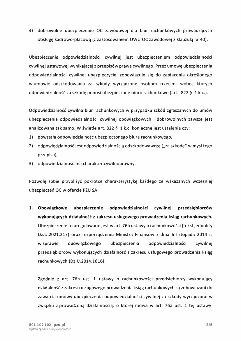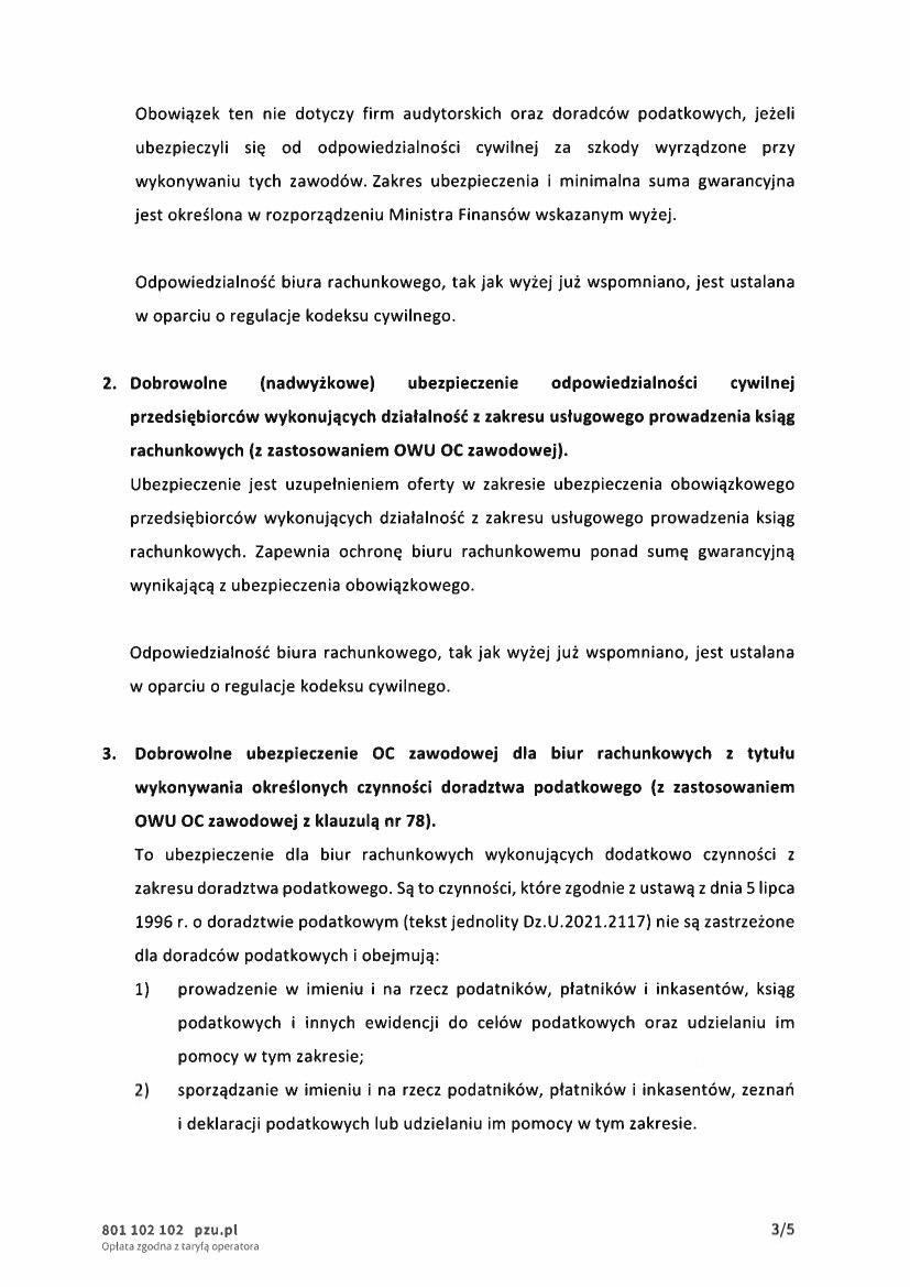 - jak prawidłowo powinno być zawarte ubezpieczenie OC biura rachunkowego,