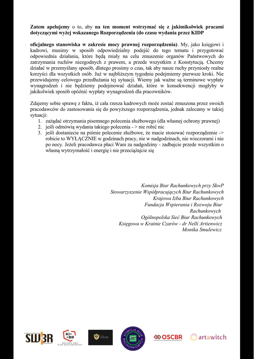 Pisma oraz postulaty wysłane w imieniu księgowych