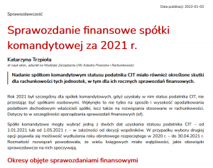 Rok 2021 był nietypowym rokiem w spółkach komandytowych, gdyż stały się one podatnikami podatku dochodowego od osób prawnych. W zależności od decyzji jaką podjęli wspólnicy spółki komandytowej, będą wynikać jej obowiązki sprawozdawcze.