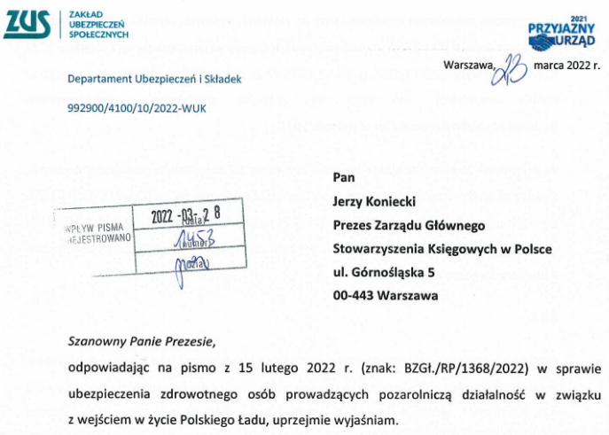 Prośba do prezes ZUS o interpretację przepisów dotyczących opłacania składek