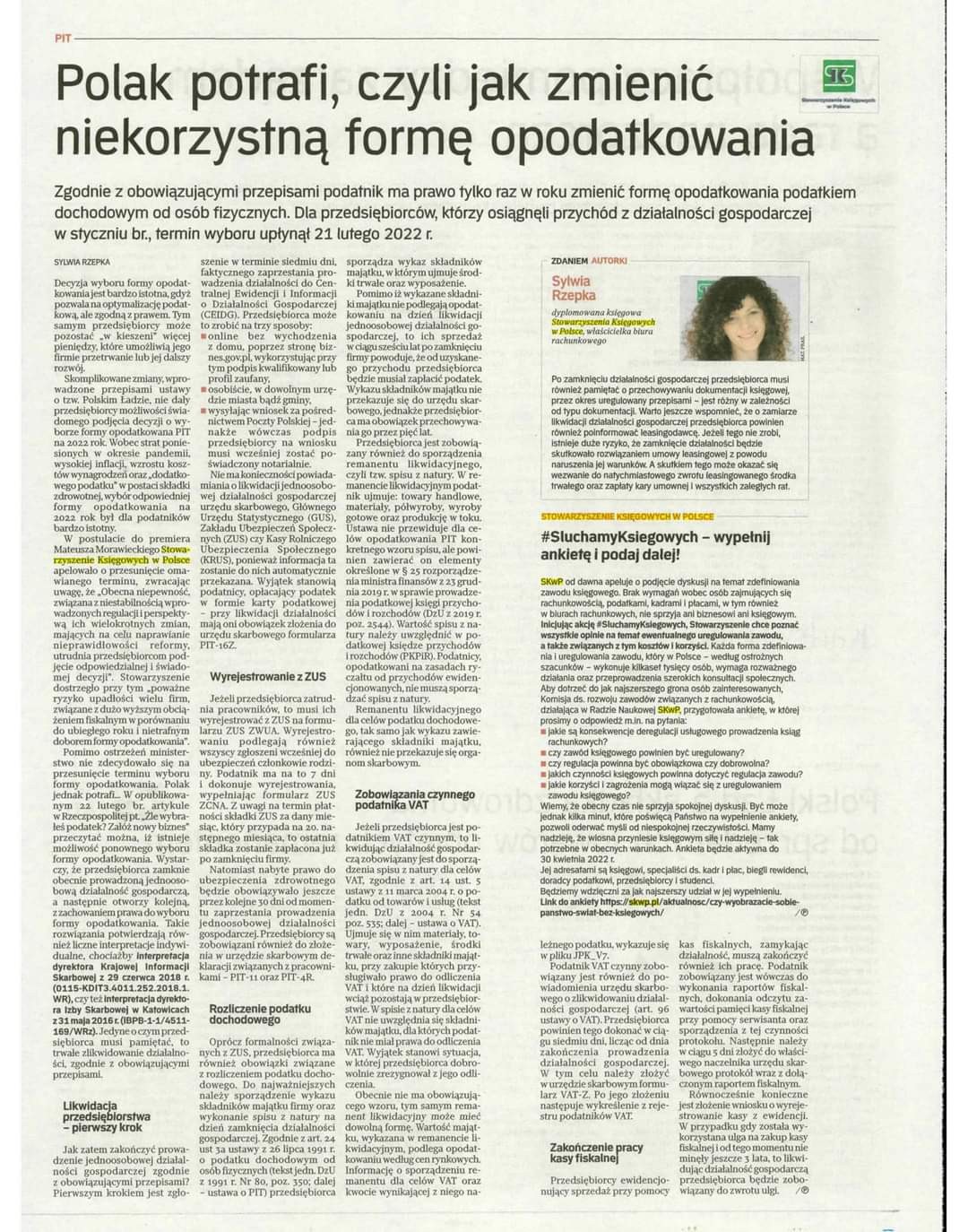 Przewodnicząca Komisji Biur Rachunkowych SKwP Aneta Lech wielokrotnie występowała w mediach, przedstawiając problemy związane z ustawą o Polskim Ładzie. Poniżej prezentujemy dwa wywiady z tą ekspertką. Problematykę związaną z Polskim Ładzie, przedstawiała również w mediach Małgorzata Pyrc, członek Komisji Biur Rachunkowych SKwP.