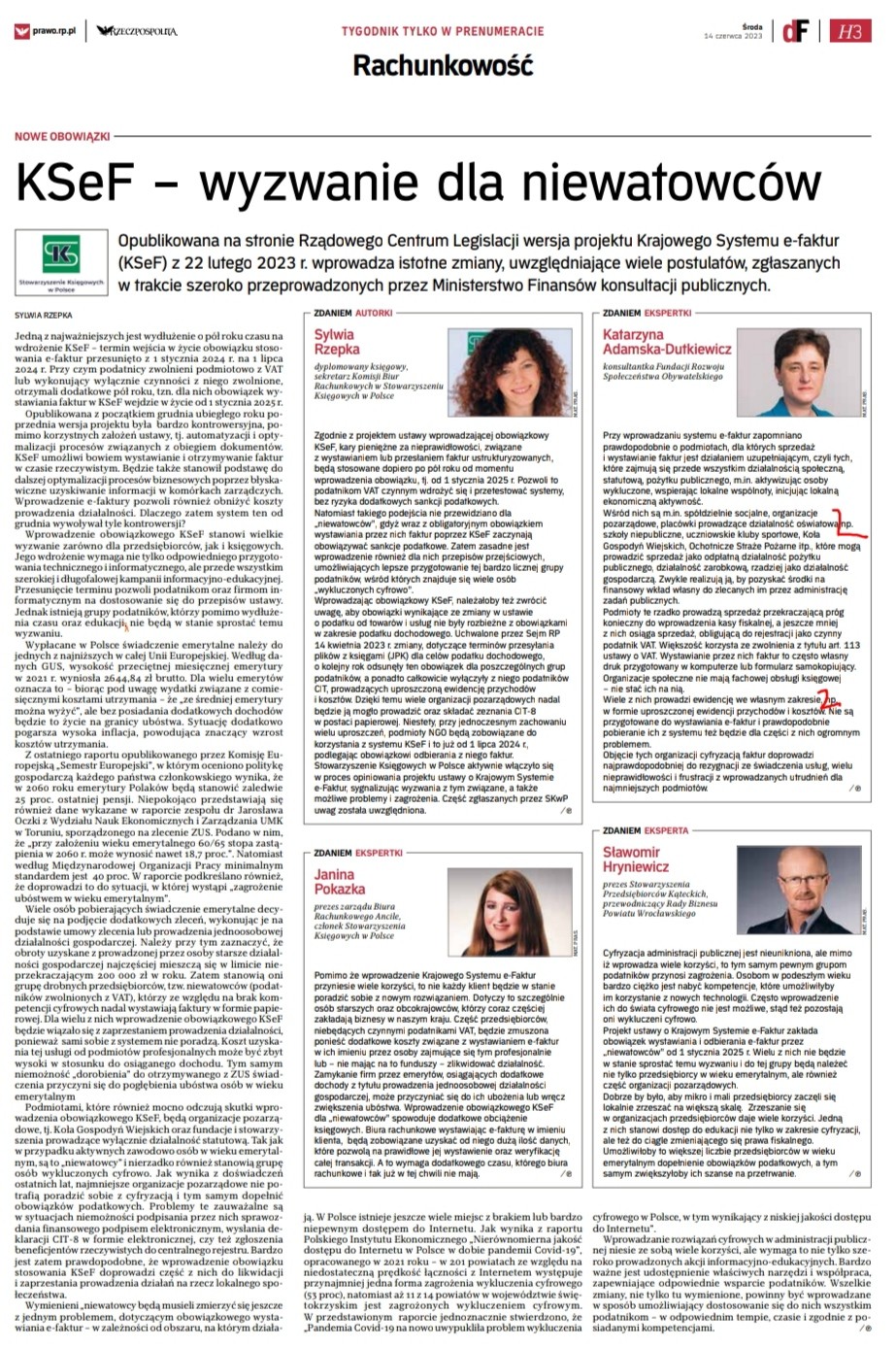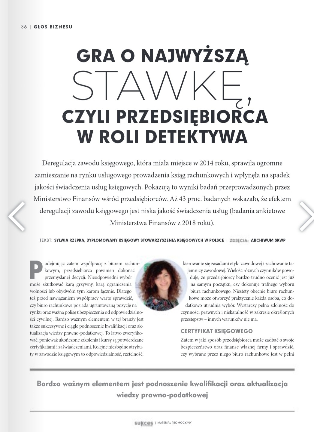 „Wyróżnienie się na rynku wśród tysięcy innych biur rachunkowych stanowi spore wyzwanie. Tym bardziej, że po dłuższym okresie lockdownu związanym z pandemią COVID-19, nastąpiło dramatyczne przyśpieszenie transformacji cyfrowej. Pozwoliło to na całkowite zniesienie barier, związanych z wyborem biura rachunkowego przez przedsiębiorców. Przy jego doborze firmy nie muszą się kierować „dogodnym dojazdem” – elektroniczny obieg dokumentów oraz kontakt z wykorzystaniem aplikacji online sprawił, że przedsiębiorcy otrzymali ogromne spektrum wyboru biura rachunkowego, niezależnie od jego umiejscowienia" - Sylwia Rzepka , wiceprzewodnicząca Komisji Biur Rachunkowych SKwP
