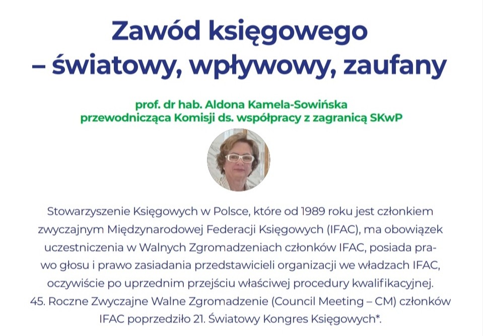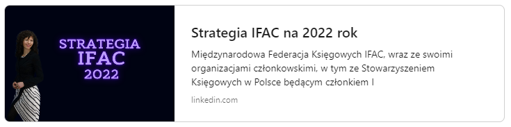 "Międzynarodowa Federacja Księgowych IFAC, wraz ze swoimi organizacjami członkowskimi, w tym ze Stowarzyszeniem Księgowych w Polsce będącym członkiem IFAC, ma służyć interesowi publicznemu, zwiększając znaczenie, reputację i wartość światowego zawodu księgowego..." - serdecznie zapraszamy do zapoznania się z artykułem, dostępnym w poniższej grafice.