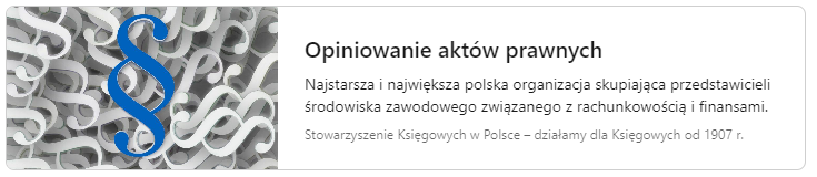 Stowarzyszenie Księgowych w Polsce Zarząd Główny prowadzi działania w zakresie opiniowania projektów aktów normatywnych.