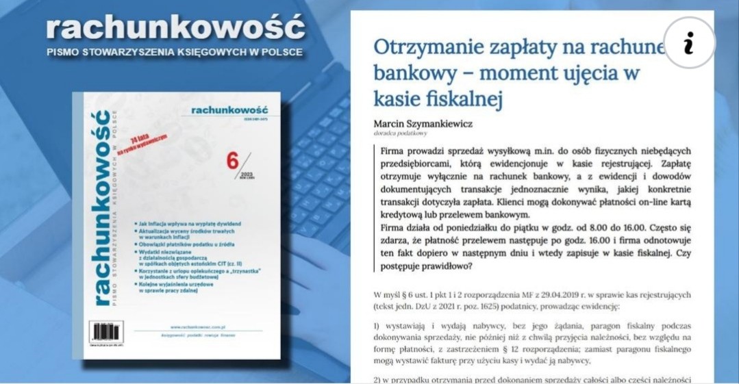 Szczególnie polecamy opublikowane na stronie Wydawnictwa Rachunkowość webinarium o uldze na terminal oraz podatniku bezgotówkowym, specjalnie przygotowany przez Leszka Lewandowicza – doradcę podatkowego, sekretarza Zarządu Głównego oraz Oddziału Wielkopolskiego SKwP.