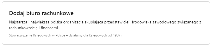 Wpisanie do bazy jest całkowicie bezpłatne, co stanowi wspaniałe narzędzie promocyjne. Jest to idealne miejsce do wyeksponowania swojego biura rachunkowego wśród potencjalnych klientów, budowania relacji biznesowych z innymi ekspertami w branży oraz umacniania pozycji i zaufania do firmy.