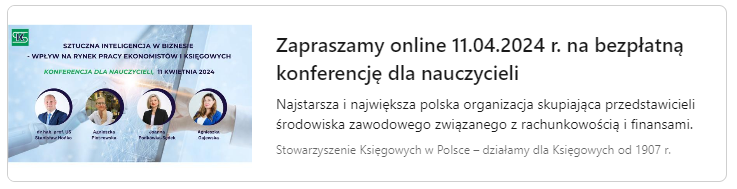 Podpisane porozumienie z wFirmą dotyczy nie tylko wzajemnej promocji, ale także organizacji przedsięwzięć mających na celu wspieranie środowiska księgowych. Mamy już doświadczenie w organizacji wspólnych wydarzeń, a dotychczasowe działania były bardzo udane. Współpraca z wFirmą otwiera przed SKwP nowe możliwości rozwoju i podnoszenia kwalifikacji księgowych, co jest kluczowe w obliczu dynamicznie zmieniającego się rynku" - dr hab. Stanisław Hońko, prof. US, prezes Stowarzyszenie Księgowych w Polsce Zarząd Główny