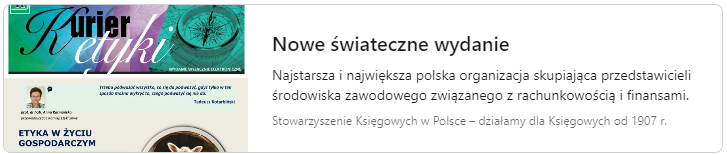 Zachęcamy również do przeczytania "Kuriera Etyki", w którym znajdują się zaskakujące wyniki badań, dotyczące biur rachunkowych. Etyka w zawodzie księgowego jest bardzo ważna, a Stowarzyszenie Księgowych w Polsce bardzo mocno ją promuje. Z Kuriera etyki dowiemy się również, że Stowarzyszenie zainicjowało działalność Kolegium Rzeczników Zawodowej Etyki w Rachunkowości, czyli forum współpracy osób, które pragną działać wspólnie z Komisją Etyki. Ważną rzeczą jest również to, że od 2022 r, będą odbywały się debaty o etyce.
