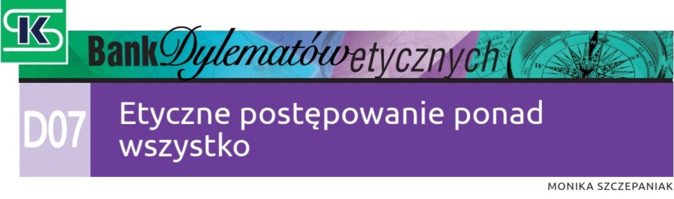 Poniżej przedstawiamy jedną z publikacji należących do Banku Dylematów Etycznych pt. „Etyczne postępowanie ponad wszystko" - Monika Szczepaniak