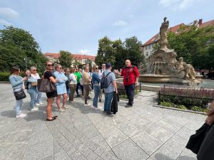 2024-06-14 - Dzień Opolskiego Księgowego' 2024 14 czerwca 2024 r. w Oddziale Okręgowym w Opolu zorganizowane zostały obchody Dnia Księgowego. Rozpoczęły się one szkoleniem w siedzibie SKwP na temat „Profesjonalizm księgowych w kontaktach z klientami – zasady savoir vivre w biznesie, dresscode w biurze, poczta mailowa”. Po wysłuchaniu bardzo interesującego wykładu, uczestniczący Członkowie SKwP udali się nieopodal na Plac Daszyńskiego, gdzie spod fontanny Opolskiej Ceres z 1907 r. rozpoczęło się zwiedzanie z przewodnikiem Opola: najpierw pieszo, później piętrowym angielskim autobusem, a następnie podziwiano miasto od strony rzeki, Płynąc stateczkiem „Opolanin” słuchano ciekawych opowieści kapitana statku. Po rejsie Odrą, uczestnicy spacerkiem poszli w kierunku amfiteatru i tam, w Narodowym Centrum Polskiej Piosenki, mogli zapoznać z historią festiwalową Opola. Znani wykonawcy, twórcy piosenek, a zwłaszcza same piosenki - to bohaterowie odwiedzonego muzeum. Dzień pełen wrażeń zakończono wspólnym grillem na wyspie Bolko. Rozmowy, wspomnienia, żarty towarzyszyły naszym uczestnikom do wieczora. Bardzo dziękujemy za tak liczny udział w obchodach Święta Księgowych i liczymy, że sprostaliśmy zadaniu uatrakcyjnienia tego dnia. Mamy nadzieję, że w przyszłym roku będzie nas jeszcze więcej? Do zobaczenia!