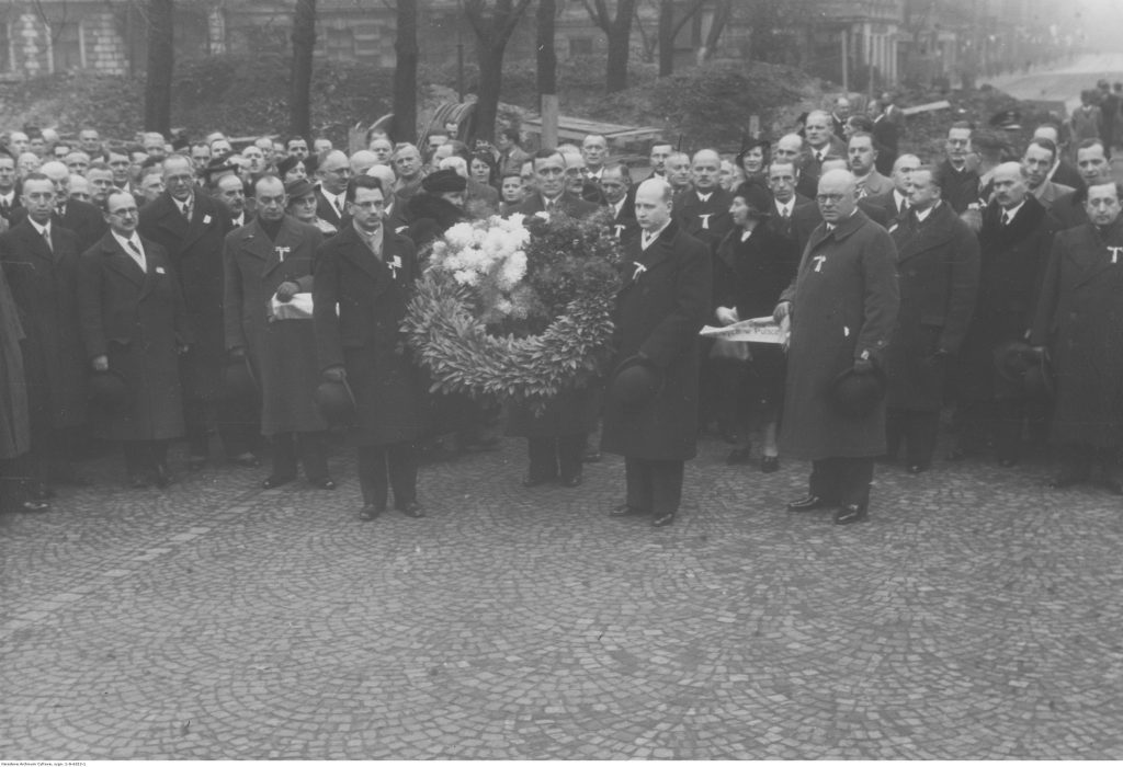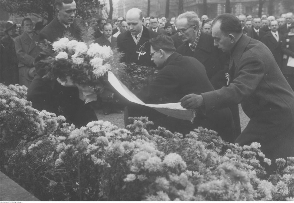 - Uczestnicy kongresu księgowych i rzeczoznawców księgowości podczas składania wieńca pod pomnikiem ku czci Powstańców Śląskich