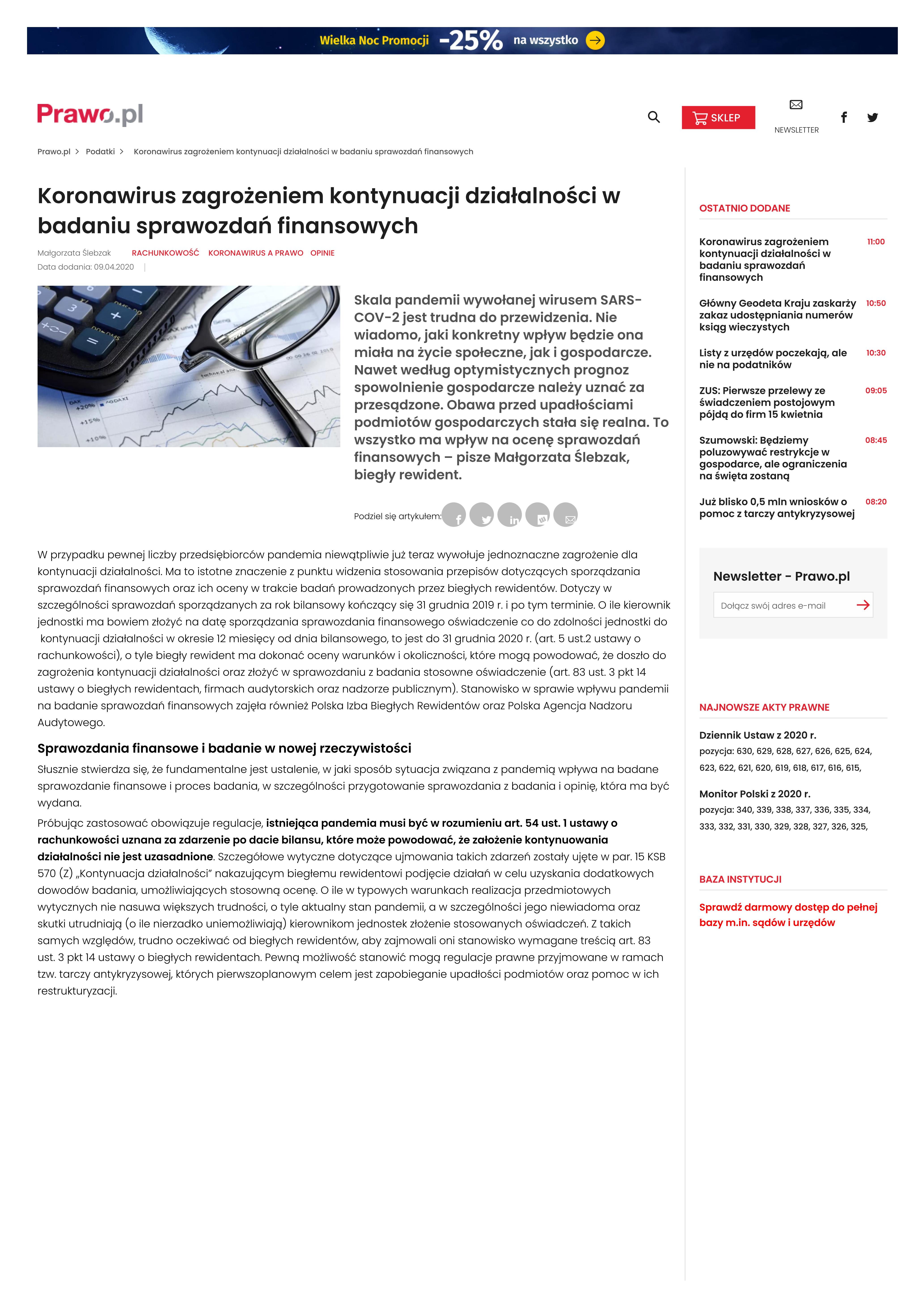 Koronawirus zagrożeniem kontynuacji działalności w badaniu sprawozdań finansowych (9.04.2020)