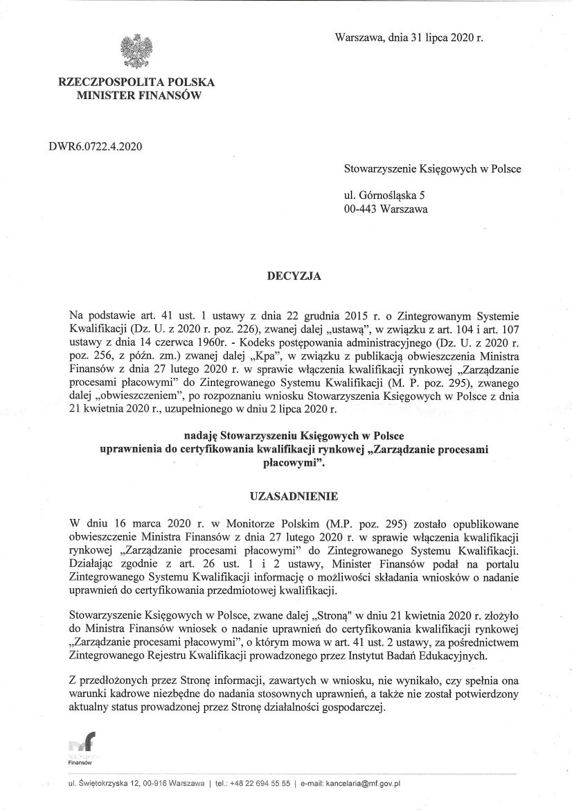 Osoba chcąca uzyskać kwalifikację "Zarządzanie procesami płacowymi" musi być gotowa do uczestnictwa w procesie strategicznego kształtowania w zakładzie pracy polityki wynagradzania pracowników oraz osób niebędących pracownikami. Rozwiązywać złożone problemy dotyczące polityki płacowej, uwzględniając przepisy z różnych dziedzin prawa, aktualne interpretacje urzędowe i orzecznictwo sądów. Nadzorować proces płacowy w zakładzie pracy, w tym optymalizację kosztów zatrudnienia i wdraża usprawnienia organizacyjne. Opracowuje procedury wynagradzania, sporządzając wytyczne dotyczące obiegu dokumentów, wzory i instrukcje spójne z polityką, zasadami i regulaminami wynagradzania. Sporządza dokumentację związaną z rozliczeniami płacowymi. Odpowiadać za terminową i poprawną realizację zobowiązań publicznoprawnych pracodawcy wynikających z naliczeń płacowych dla pracowników oraz osób niebędących pracownikami. Planować i nadzorować pracę zespołu odpowiadającego za realizację procesów płacowych.