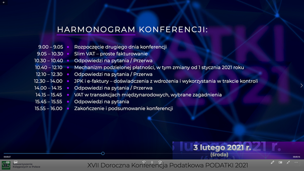 Rozpoczęcie konferencji - dzień drugi moderator - p. Joanna Podkówka-Sędek, specjalista z zakresu VAT
