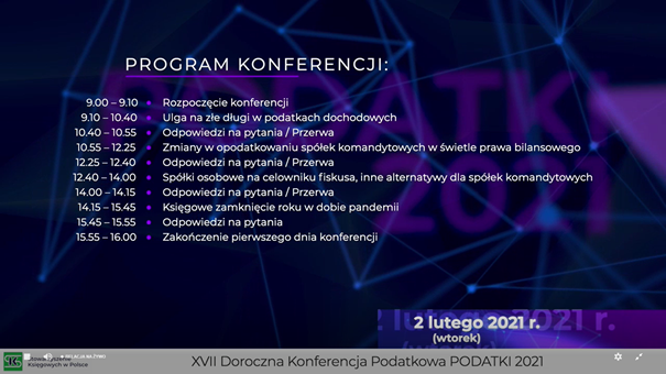 Na zakończenie pierwszego dnia gorący temat "Księgowe zamknięcie roku w dobie pandemii" przedstawił p. Łukasz Motała, biegły rewident, prezes zarządu firmy audytorskiej 4 AUDYT sp. z o.o.