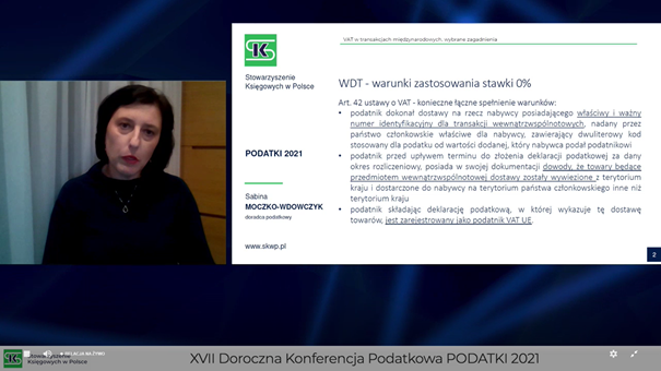 | "VAT w transakcjach międzynarodowych - wybrane zagadnienia", to ostatni temat konferencji PODATKI 2021 zaprezentowany przez doradcę podatkowego p. Sabinę Moczko-Wdowczyk.