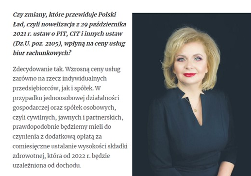 Zapraszamy na wywiad z Anetą Lech, doradcą podatkowym, przewodniczącą Komisji Biur Rachunkowych przy Stowarzyszeniu Księgowych w Polsce opublikowanym w dzisiejszym wydaniu "Dziennika Gazety Prawnej".