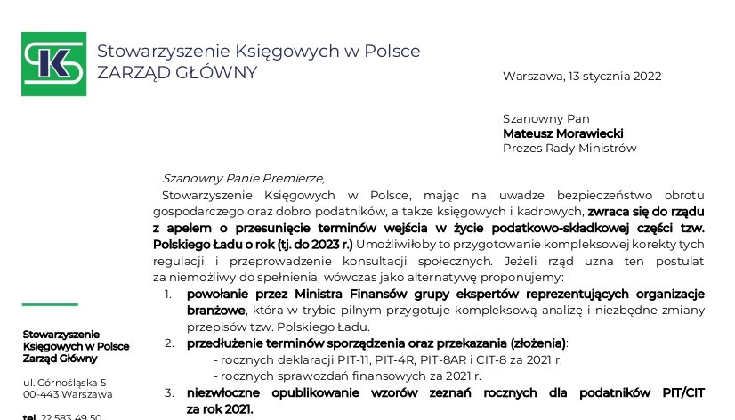 O wydłużenie terminu sporządzenia, zatwierdzenia oraz przekazania sprawozdań finansowych, w swoim apelu do Premiera Mateusza Morawieckiego postulowało Stowarzyszenie Księgowych w Polsce