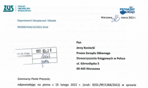 Prośba do prezes ZUS o interpretację przepisów dotyczących opłacania składek od przychodów z różnych tytułów |