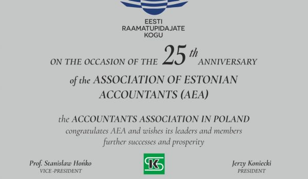 W dniach 28-29 października 2021 r. odbyły się obchody ćwierćwiecza Stowarzyszenia Księgowych w Estonii (Association of Estonian Accountants – AEA). Obchody zostały podzielone na dwa dni. W pierwszym dniu odbyła się uroczysta gala, w której wzięli udział zagraniczni goście, reprezentujący organizacje zrzeszające księgowych w Niemczech, Austrii, Finlandii, Turcji oraz w Polsce. Przedstawiciele AEA wyrazili otwartość na dalszą współpracę z SKwP.