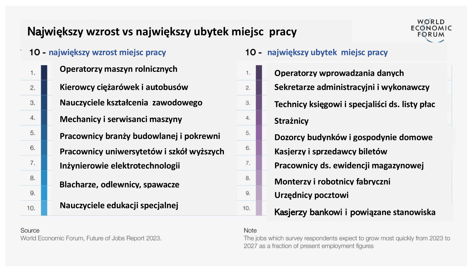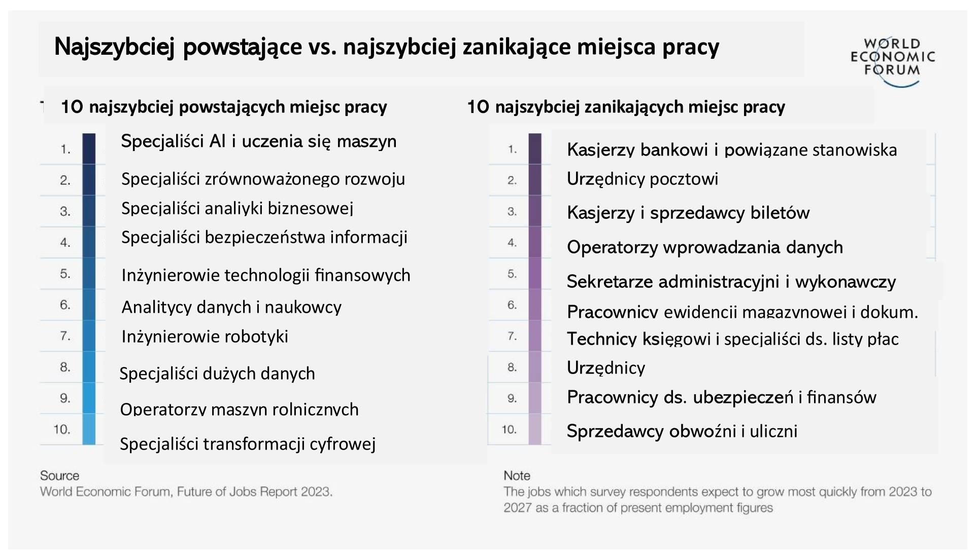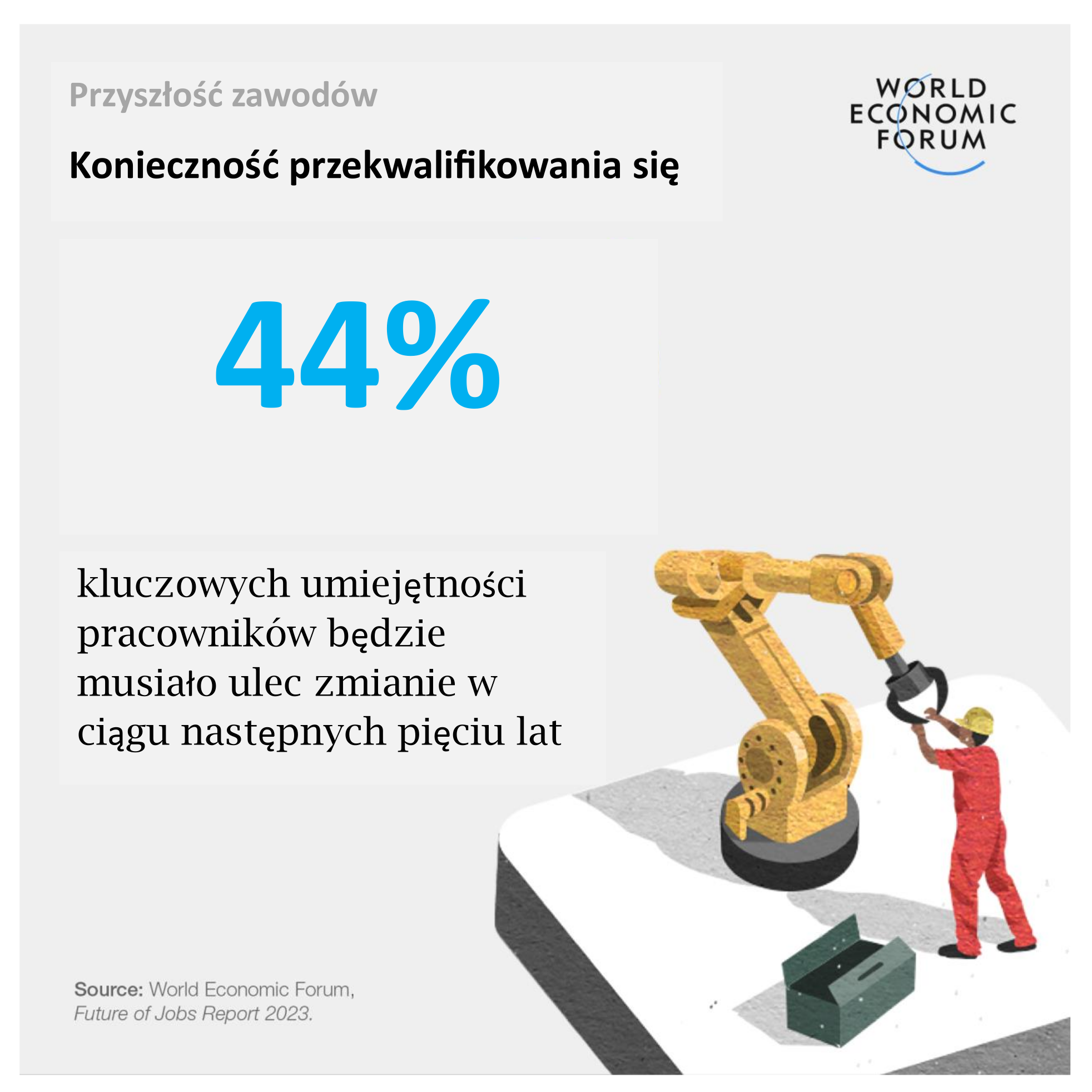 Raport Przyszłość zawodów (Future of Jobs Report 2023) – liczący 296 stron – wydawany cyklicznie od 2016 r. przez Światowe Forum Ekonomiczne (World Economic Forum) bada zakłócenia pracy, wzrost gospodarczy i strategie zmiany pracy.